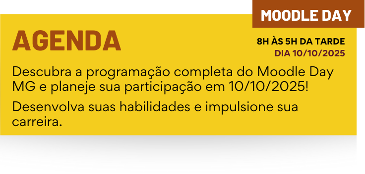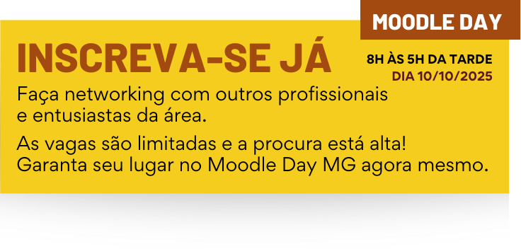 Objetivos do Evento Objetivo Geral: Fortalecer as relações entre equipes de desenvolvimento de conteúdo e de tecnologia da informação atuantes nas ações de educação. Objetivos Específicos: Difundir as boas práticas do Moodle. Contribuir para a atualização dos profissionais quanto às grandes transformações nas tecnologias educacionais. Aplicar o potencial da I.A. no desenvolvimento das capacitações. O Evento em Números Um dia de imersão total no universo Moodle, conectando profissionais e impulsionando a educação digital em Minas Gerais. Palestras e Painéis 0 Horas de Conteúdo 0 Profissionais Reunidos 0 + Dia de Imersão 0 Gestão Estratégica do EAD Descubra como transformar o Moodle em um ativo estratégico para sua instituição, com uma metodologia de implantação e sustentação eficaz. Inovações do Moodle Conheça as melhorias expressivas das versões 4.5 e 5.0, com interface mais limpa, navegação intuitiva e novos recursos de relatórios e performance. Ferramentas de Autoria Amplie o potencial interativo dos seus cursos com H5P e Articulate Rise, criando atividades, quizzes, vídeos e jogos educacionais dinâmicos. Inteligência Artificial no Moodle Explore como a I.A. pode criar experiências personalizadas, com tutores virtuais, correção automatizada e análise preditiva de desempenho.